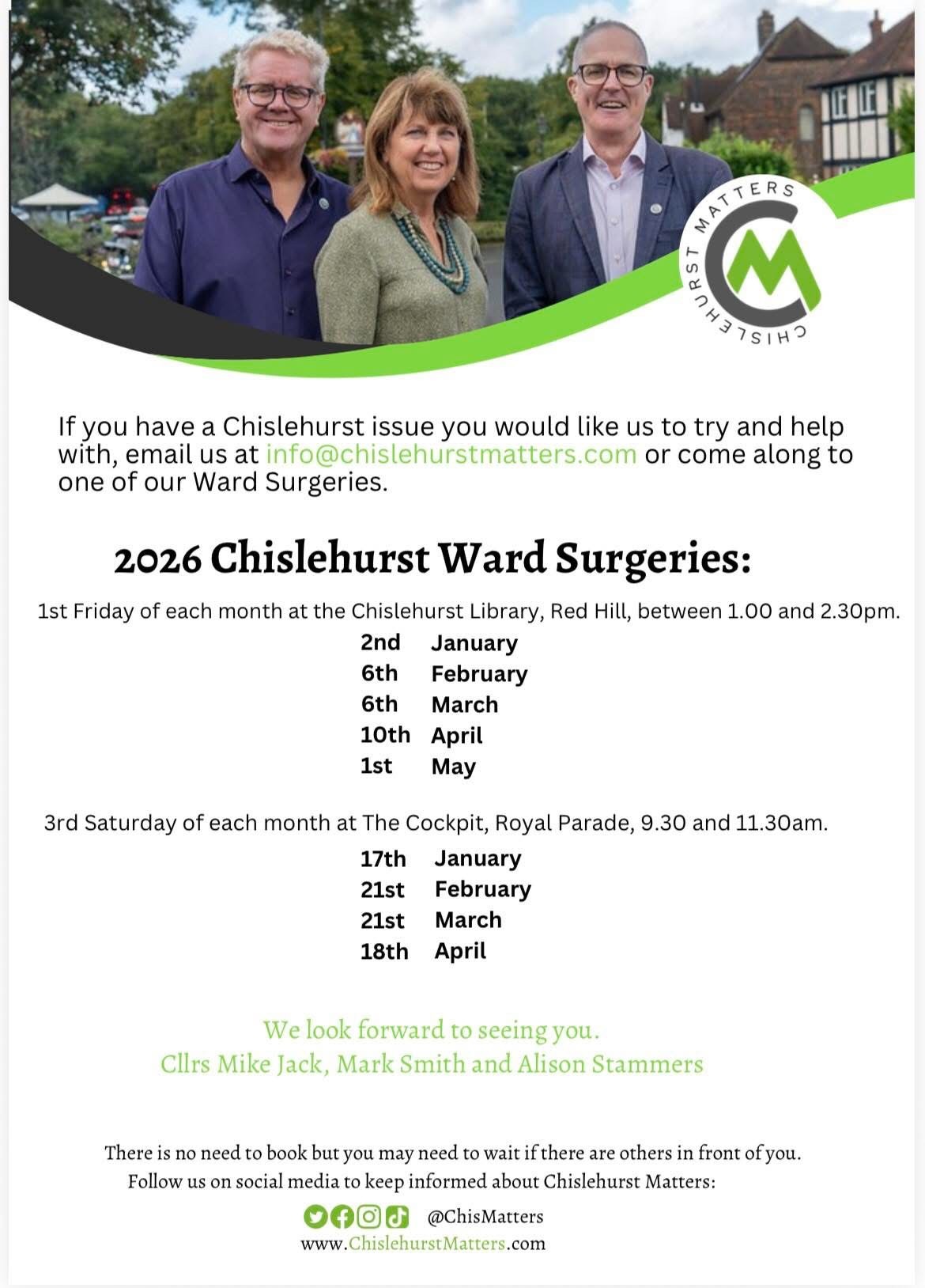 That’s why we formed Chislehurst Matters, to work for you, and to work for Chislehurst.